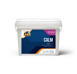 - Kosttilskudd for hester som lett blir distrahert av omgivelsene - Utviklet for å fremme balanse i nervesystemet og forbedre konsentrasjonen - Ideelt for unge, lettskremte hester - Inneholder magnesium, L-tryptofan, urter og vitaminer som fremmer avslapning Noen hester, som unge hester, kan lett bli imponert av omgivelsene sine og det kan forårsake stress. Som følge av dette kan hester overreagere og vise nervøs atferd. Cavalor Calm inneholder magnesium, L-tryptofan, B-vitaminer og urter som forbedrer konsentrasjonen og fremkaller avslapning. GABA (gamma-aminosmørsyre) er en naturlig forekommende nevrotransmitter som har en hemmende effekt på sentralnervesystemet. Skremte eller engstelige hester kan være et tegn på en forstyrret GABA-balanse. Inngredienser: Vannfritt magnesiumsulfat / Gjærprodukter / Kalsiumkarbonat Mer informasjon om dette produktet finner du i produktdatabladet. Du kan laste ned dette databladet ved å klikke på linken og «spesifikasjoner» Startdose på 30 g, 2–3 dager før en forventet stressende situasjon. Kan også brukes over en lengre periode, opptil 4 uker. Blandes med den daglige fôrrasjonen. Maksimum per hest per dag: 60 g. 1 mål = 15 g.
