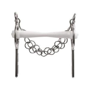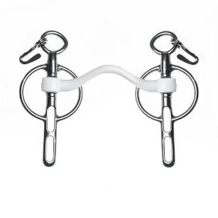 Et innovativ kombi-hackamore med et medium portet munnstykke og lange skaft. Bitt med fleksibelt munnstykke kan brukes på alle hester, men de er spesielt egnet for unghester eller hester med sensitiv munn. Plasten er FDA-godkjent, noe som betyr at materialet er giftfritt og ikke inneholder myknere. I tillegg er bittene svært solide på grunn av bruken av en fleksibel kjerne laget av rustfritt stål.