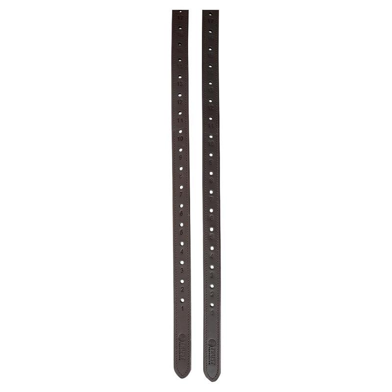 TRUST stigbøyleremmer er laget av europeisk lær av høy kvalitet som er mykt og slitesterkt. Disse remmene har pregede tall under hvert hull, slik at du enkelt kan huske den foretrukne lengden for din ridestil. Innsiden av reimen er dekket av nylon for en myk følelse.